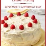 This beautiful, delicious Banana Raspberry Cake with Lemon Frosting recipe comes from my cousin Barb’s daughter Mindy Newlin. Surprisingly easy to prepare, the buttermilk and bananas in the batter keep the cake super moist, and the lemon-cream cheese frosting is simply divine. And the fresh raspberries stuffed between the cake layers provide brightness and color (yes, they’re also inside, not just on top!).