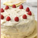 - Place second cake layer on top of the raspberries. Spread remaining frosting on the top and sides of the cake.