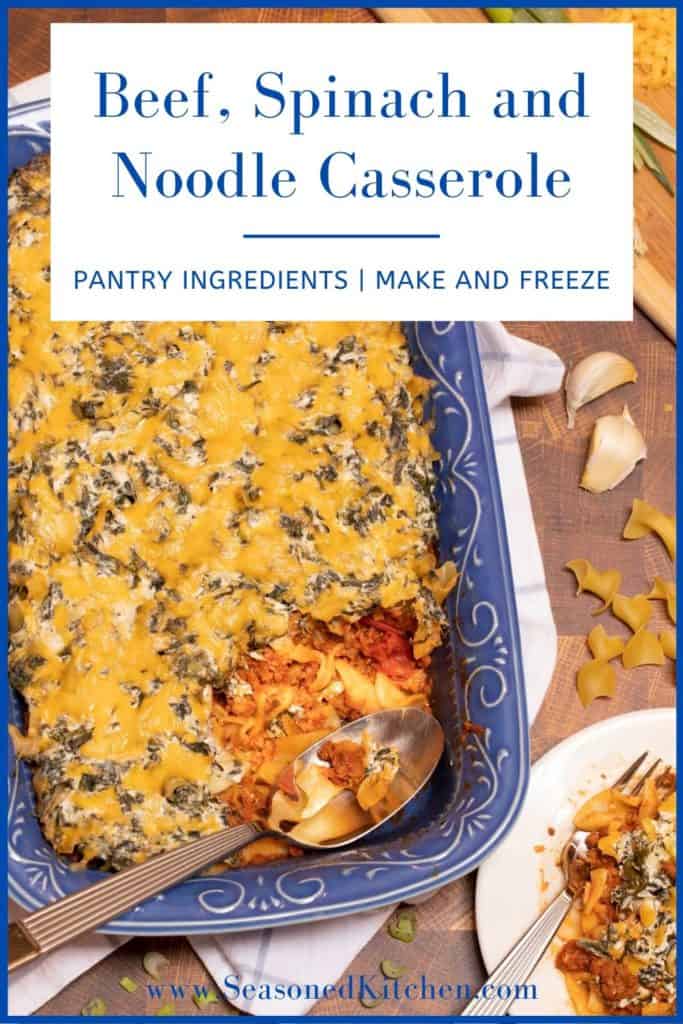 This Beef, Spinach and Noodle Casserole is extremely flexible and pantry friendly. You can use just about any type of dried pasta in place of the egg noodles. It’s also delicious with ground turkey or chicken as well. Instead of cream cheese, you can substitute ricotta or cottage cheese. So, switch it up a bit and have fun!