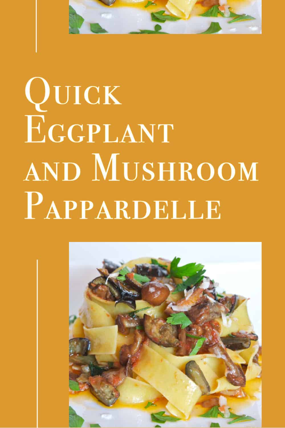 A super easy pasta dish to prepare on a busy day, Quick Eggplant and Mushroom Pappardelle from my husband Robert is a crowd-pleaser!