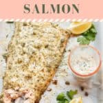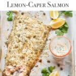 Discover the irresistible taste of our Baked Lemon Caper Salmon. In this quick and easy dish, succulent salmon is topped with a delectable mixture of zesty lemon juice, tangy capers, creamy mayo, and herbaceous parsley and then baked. The result is flaky, moist salmon accented with a harmonious blend of citrusy tang, savory creaminess, and herbal notes.
