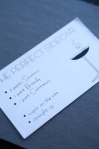 Tiring of hearing Joan recite the recipe seemingly every time they went out to dinner, her clever husband David had business cards printed with the exact recipe! Joan and Deborah both carry their cocktail cards in their purses at all times, to ensure they get the Perfect Sidecar.