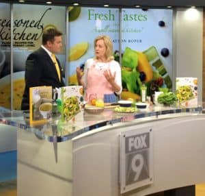 Lee makes Layered Salmon Salad with Avocado-Lime Yogurt Dressing in mason jars with co-anchors Jason DeRusha and Kylie Bearse. She also talks about the story behind her cookbook Fresh Tastes. Watch the Video