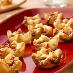 Here’s all you have to do to make these delectable two-bite appetizers. Note that the tarts need to be frozen before baking: