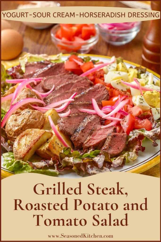 For a beautiful presentation, I recommend arranging the ingredients in rows over torn lettuce, like a Cobb salad (and like the photo!). Note that I do provide the directions for preparing the steak and potatoes, should you not have leftovers!