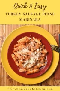 This quick and easy Turkey Sausage Penne Marinara is perfect for busy day dinner. With around 15 minutes of prep time plus 15 to 20 minutes of cook time, you can have dinner on the table in less than 40 minutes! So easy, so scrumptious.